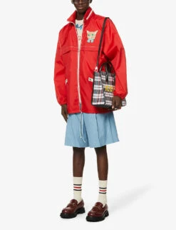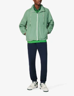 Funnel-neck Slip-pocket Regular-fit Stretch-woven Hooded Jacket