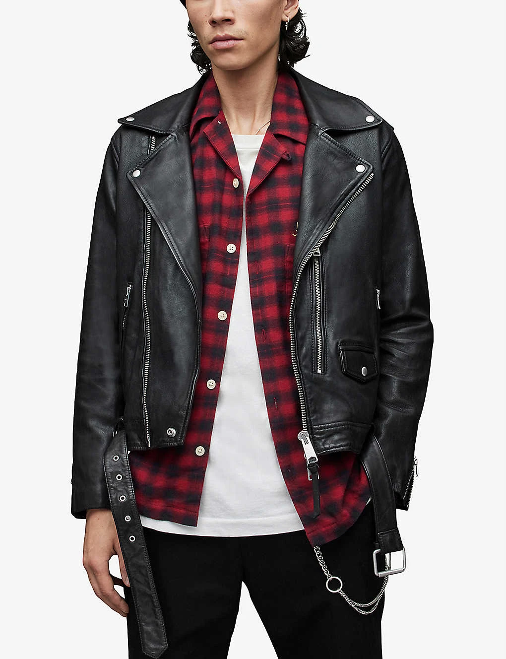 AllSaints Dren Biker-collar Zip-detail Leather Jacket