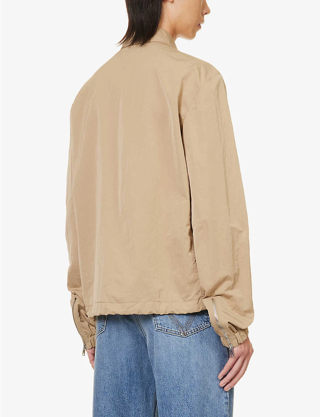 - Boxy fit, straight-point collar, long sleeves, elasticated zipped cuffs, slip pocket at chest, two zipped pockets at sides, branded silver-toned hardware, toggle hem, partially lined