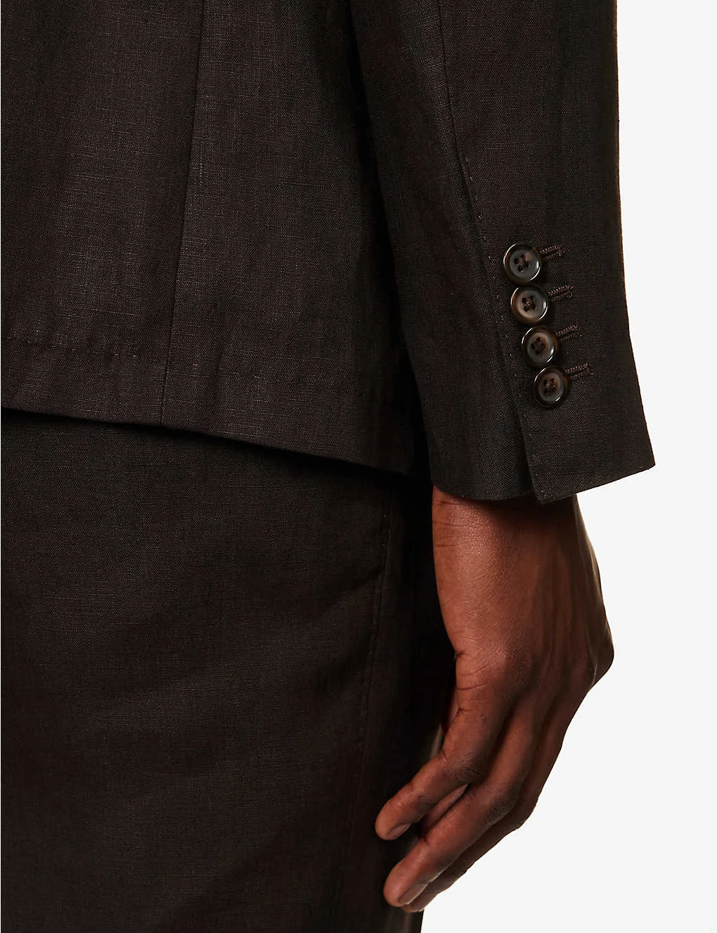 - Exposed button fastenings at front