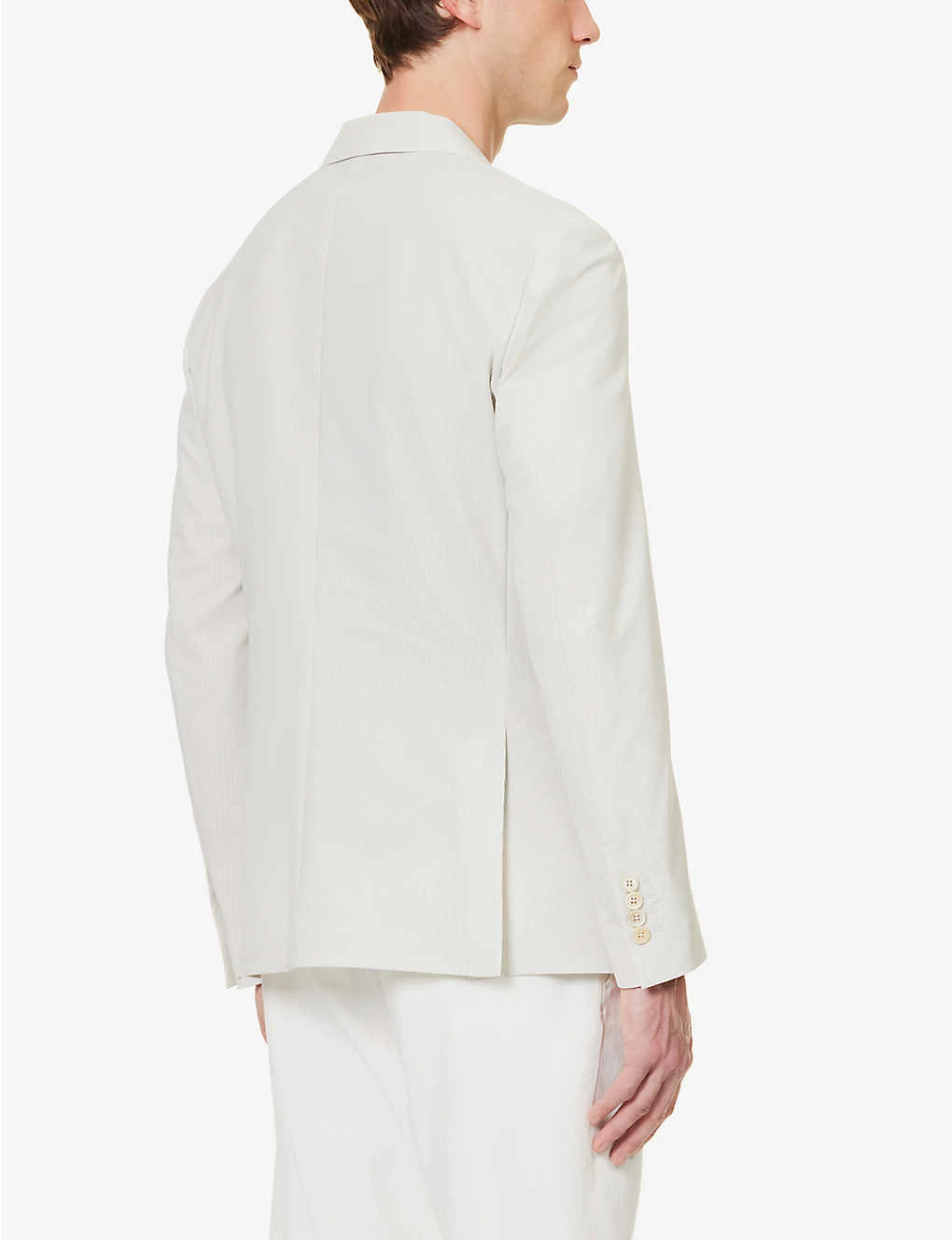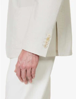 - Regular-fit, notch lapels, long sleeves, four non-functioning buttons at cuffs, branded buttons, welt pocket at chest, darts at chest, single-breasted, two patch pocket at front, double-vent at back, internal patch pocket