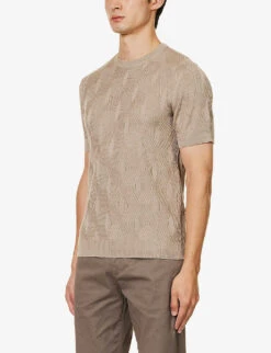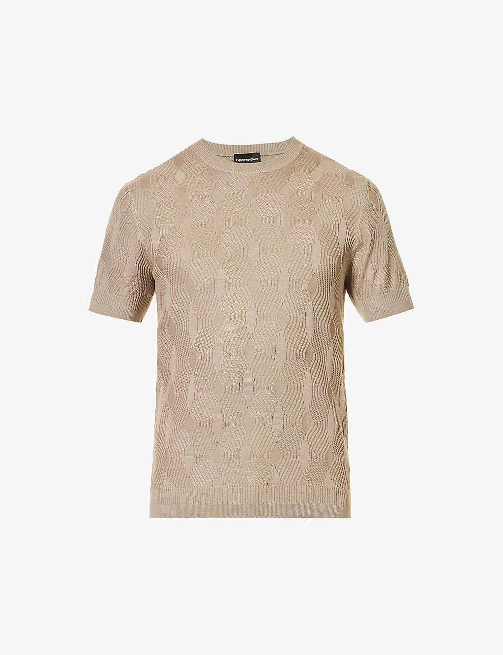 Emporio Armani Crewneck Ribbed-trim Woven-blend Jumper