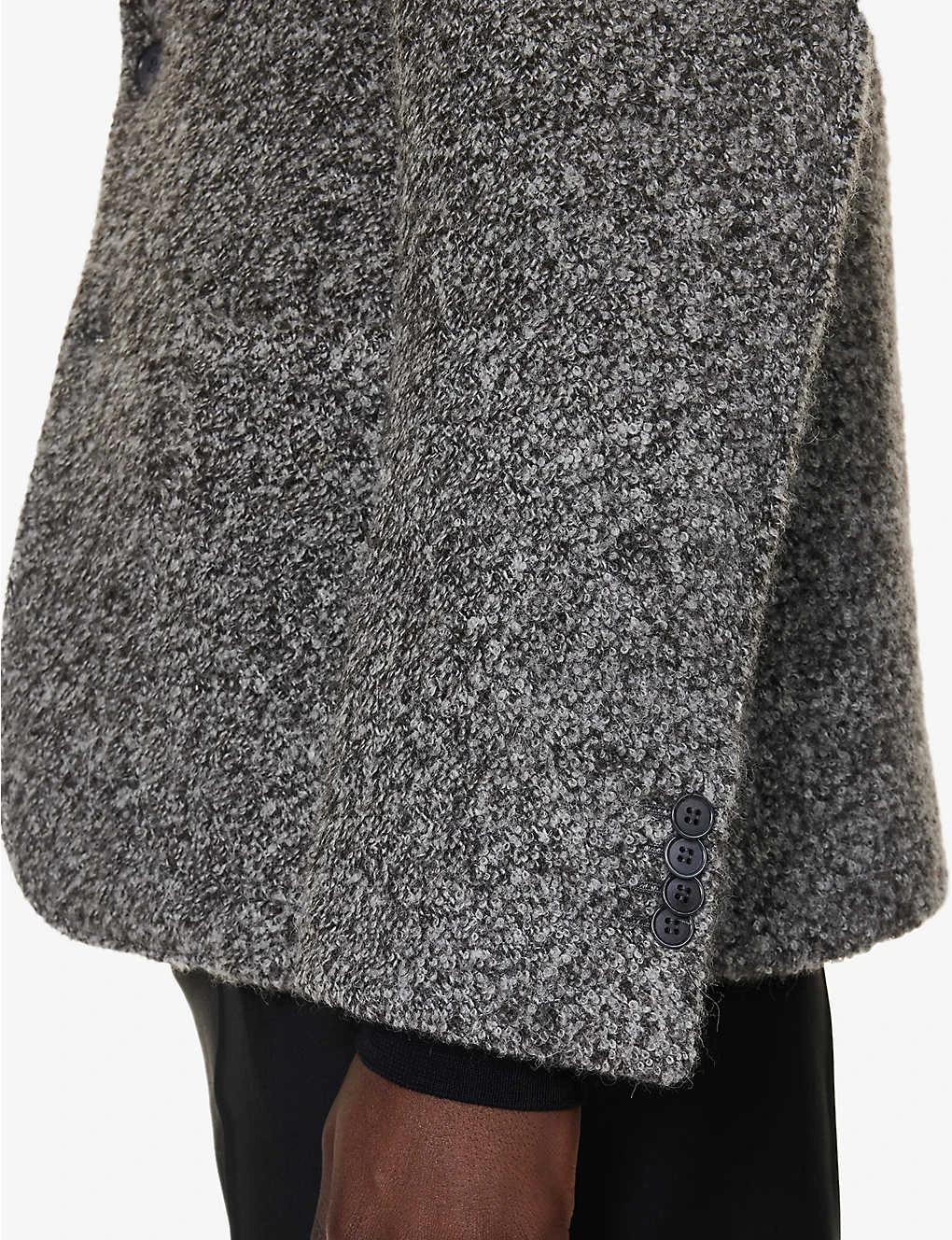 - Regular fit, notched lapels, long sleeves, buttoned cuffs, patch pocket at chest, two patch pockets at front, all-over brushed texture
