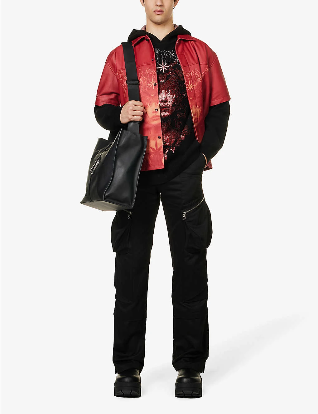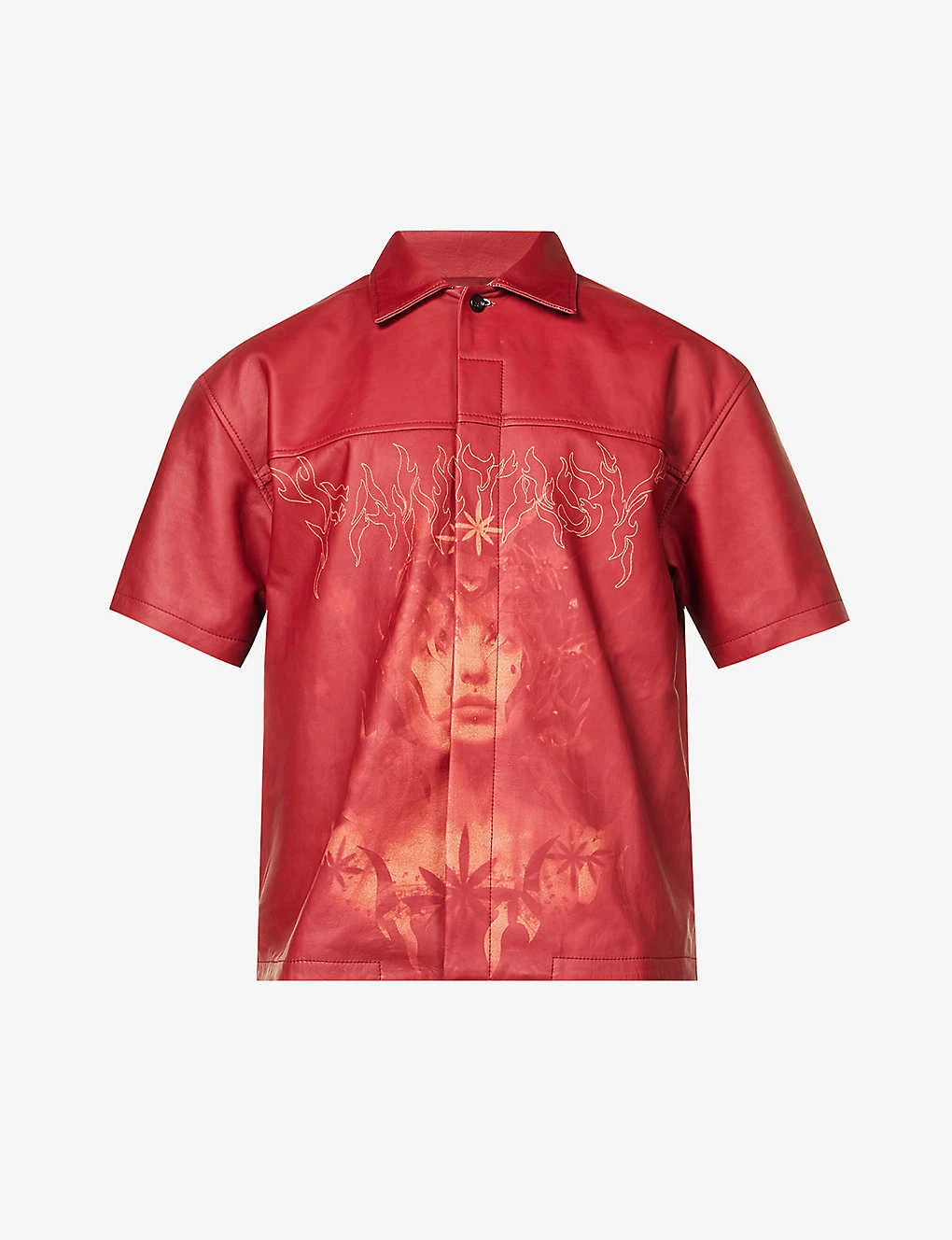 Be the first to review “Graphic-print Boxy-fit Leather Shirt” Cancel reply