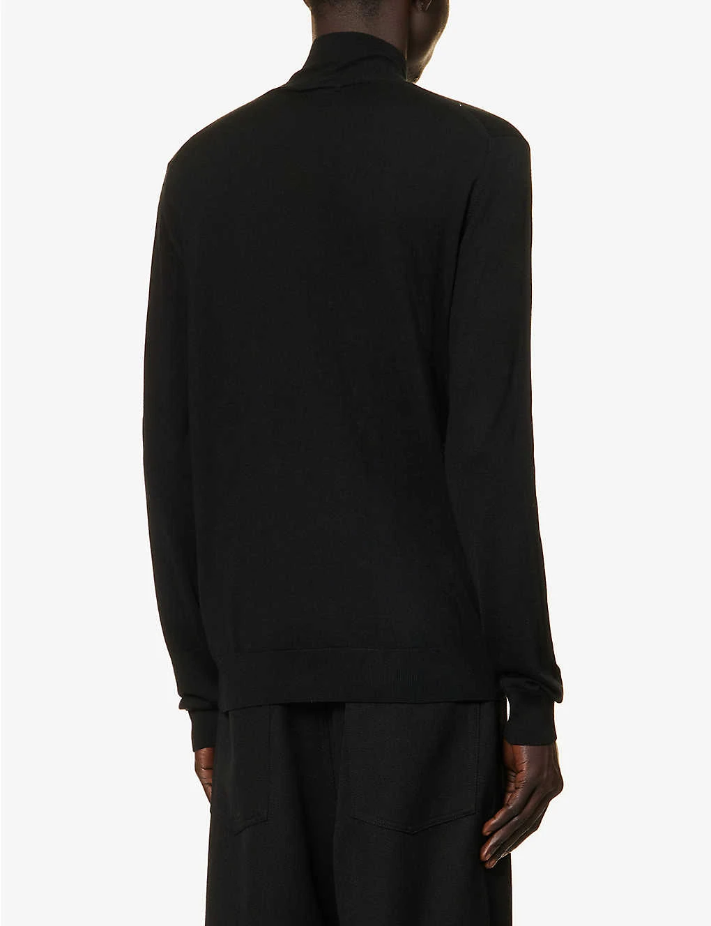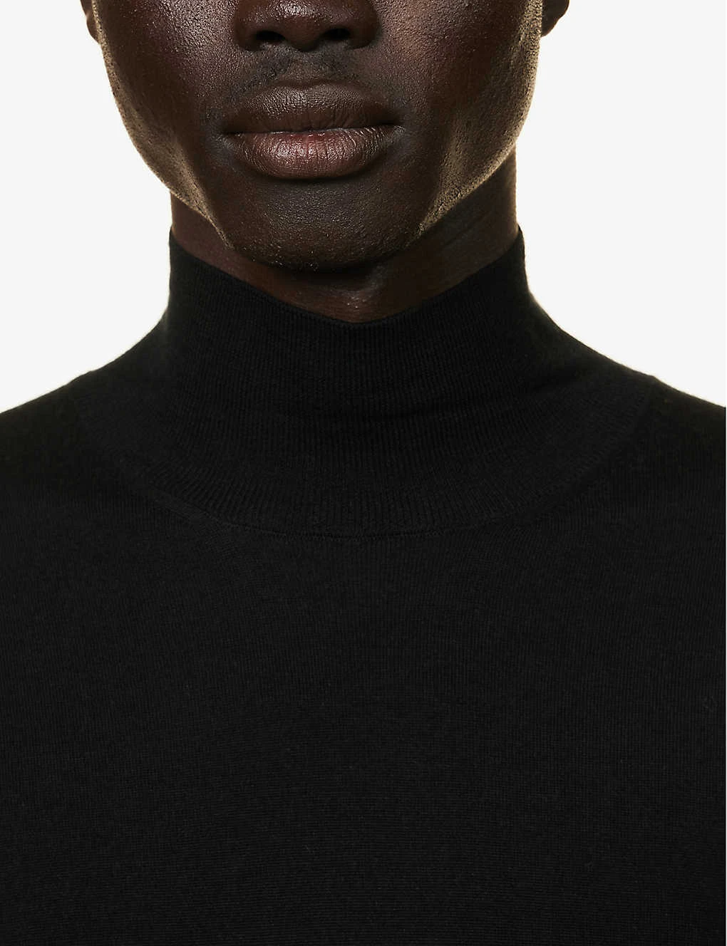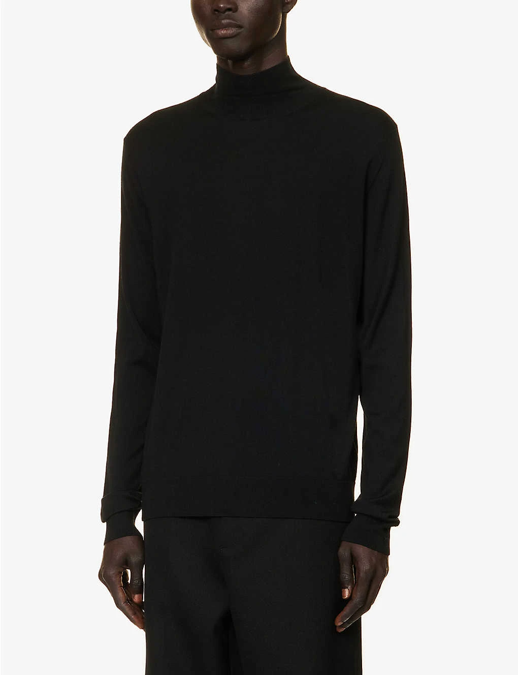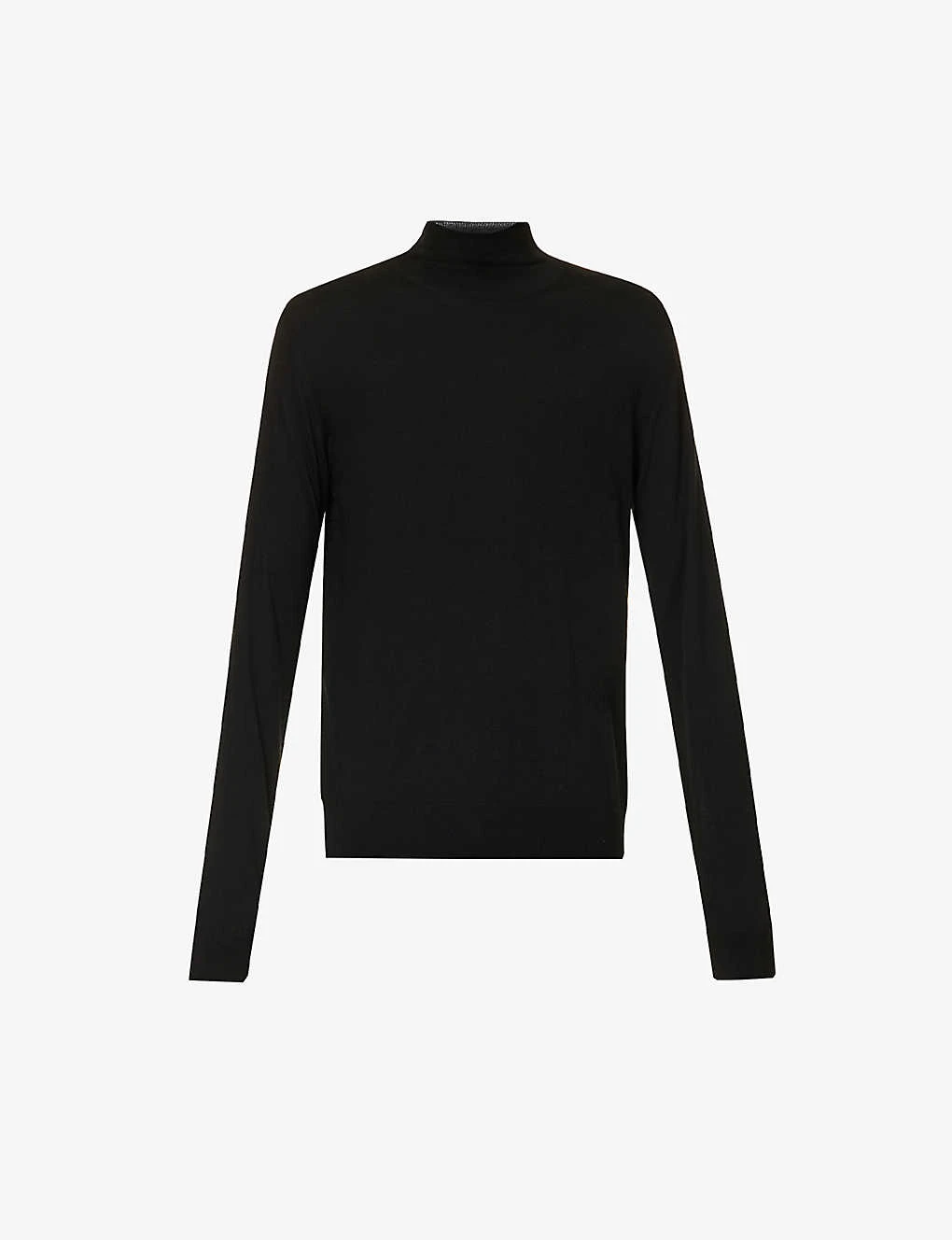 - Slim fit, funnel neck, long sleeves, fine knit, embroidered branding at front, ribbed trims