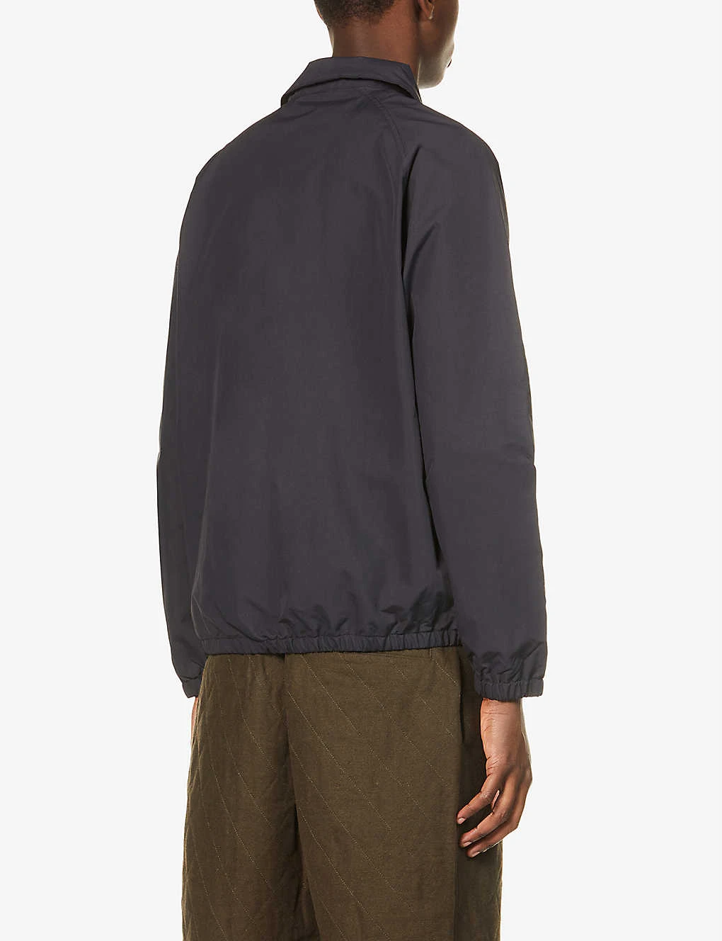 - Spread collar, raglan long sleeves, elasticated cuffs, brand patch at chest, two zip fastening pockets at front, elasticated hem, fully lined
