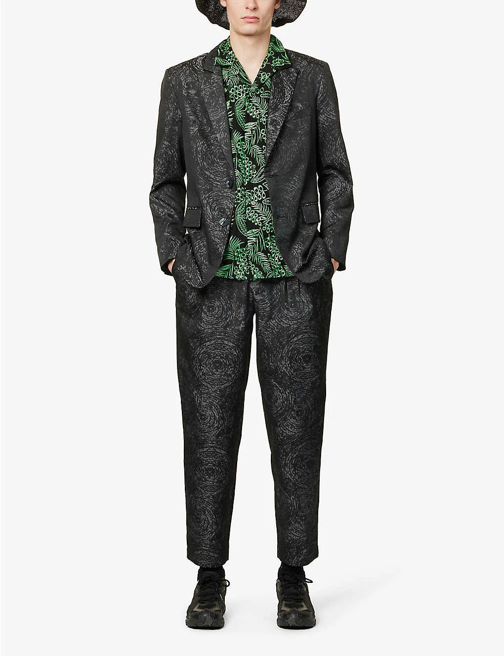 Patterned Single-breasted Notched-lapel Woven Blazer