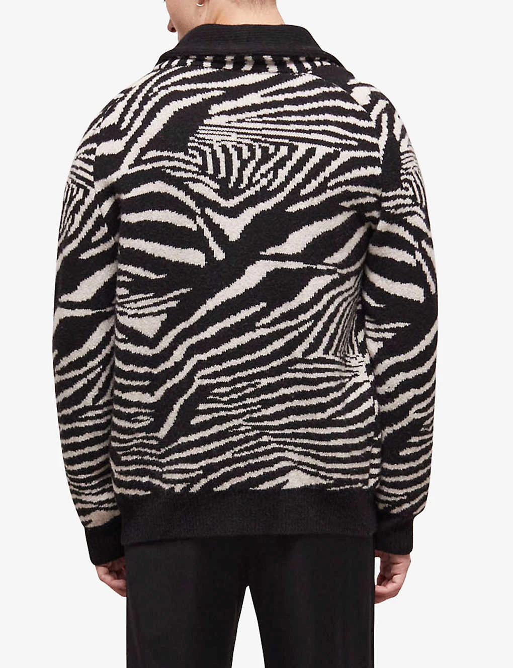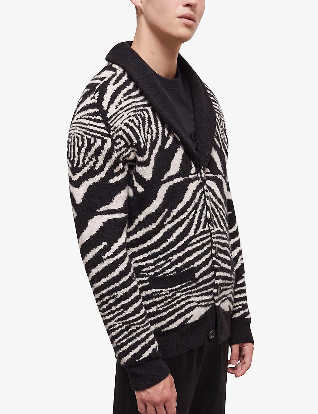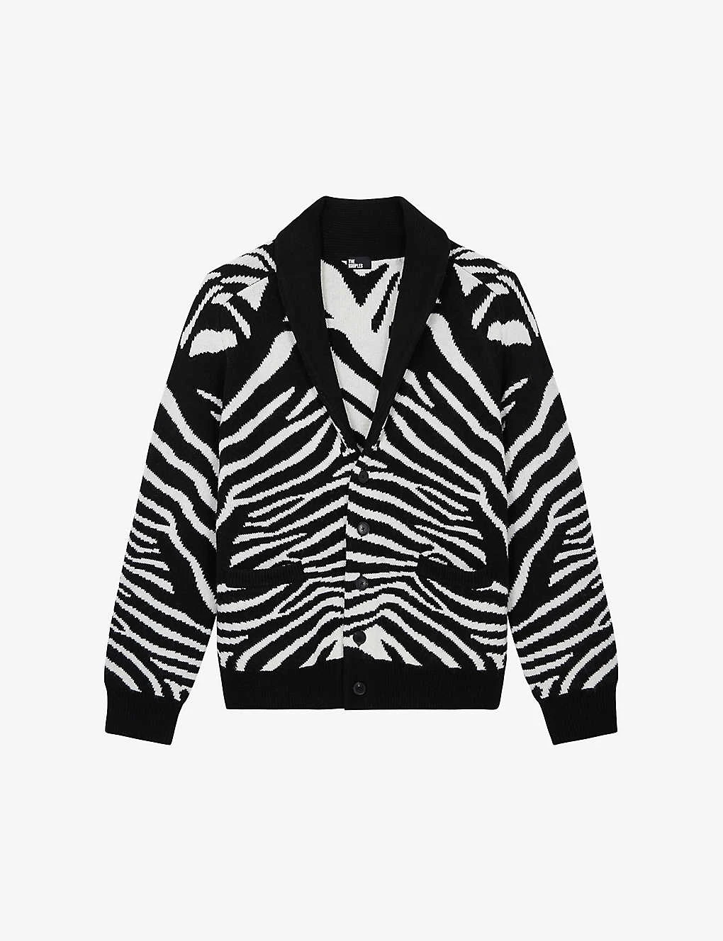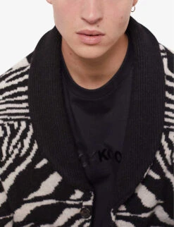 THE KOOPLES Zebra-pattern Shawl-collar Stretch-wool Cardigan