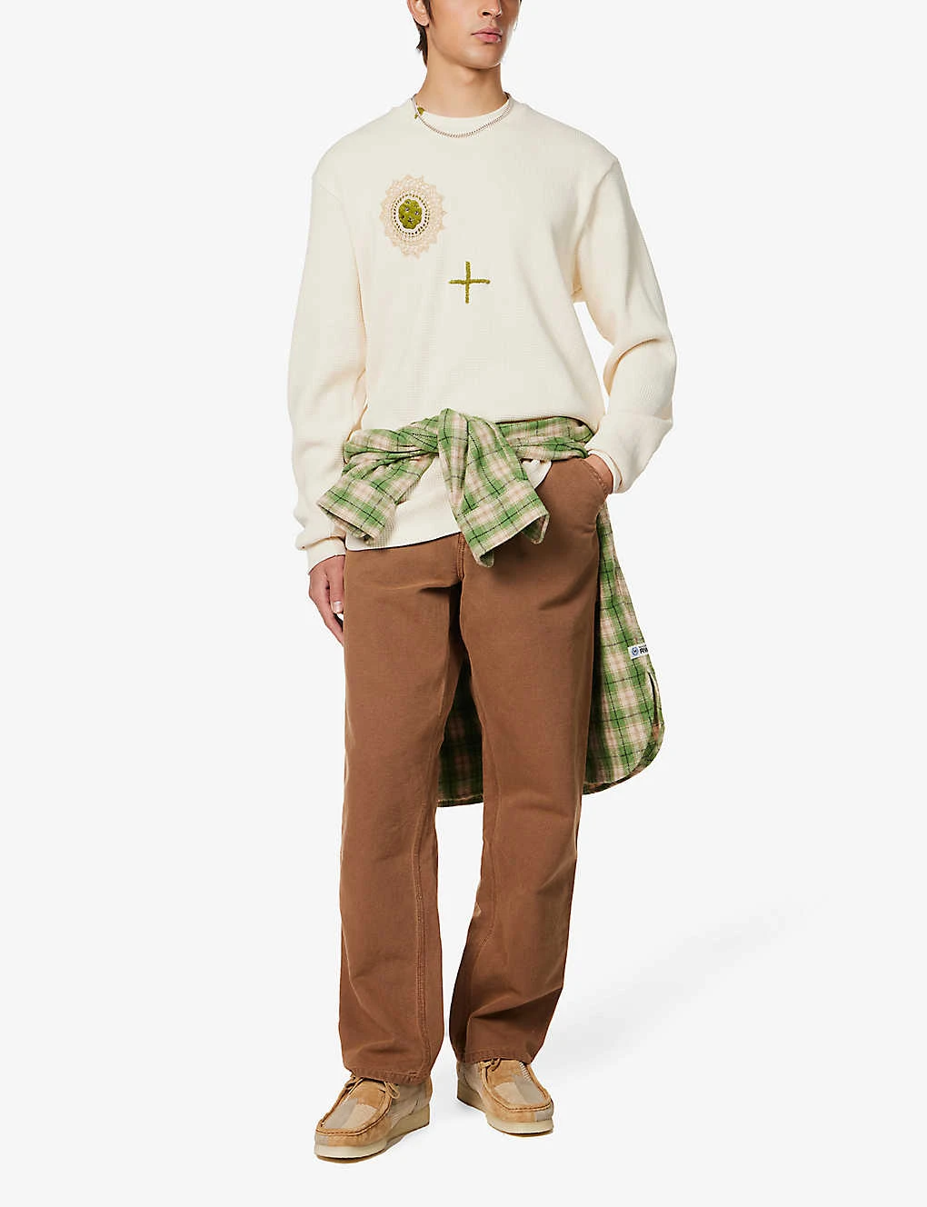 Upcycled Floral-embroidered Waffle-knit Jumper