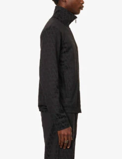 - Regular fit, funnel neck, long sleeves, popper-fastened cuffs, two slip pockets at sides, branded hardware, all-over brand pattern